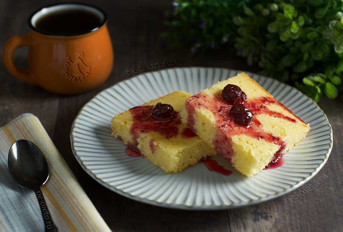 - После звукового сигнала аккуратно открываем крышку, смазываем верх манника густым вареньем, равномерно распределив его ложкой по всей поверхности пирога. После этого снова закрываем крышку и готовим на том же режиме еще 10 минут. Затем переводим прибор в программу поддержания тепла, ждем немного и отключаем мультиварку.