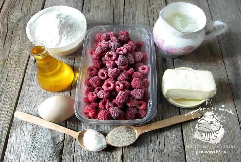 Чтобы приготовить песочный пирог с малиной, берут следующие ингредиенты:
