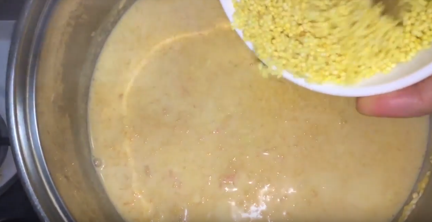 3. Затем добавляем в кастрюлю промытое под проточной водой пшено и продолжаем варить, убавив огонь до минимума. Пшено варится до готовности в течение 20-25 минут.