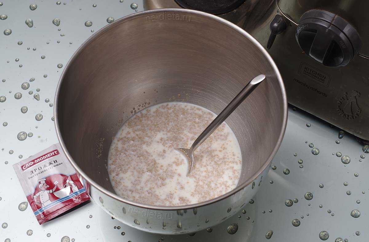 Поставить миску с молоком в теплое место на 15 минут, чтобы дрожжи начали свою работу и поднялись пышной пенистой шапочкой.