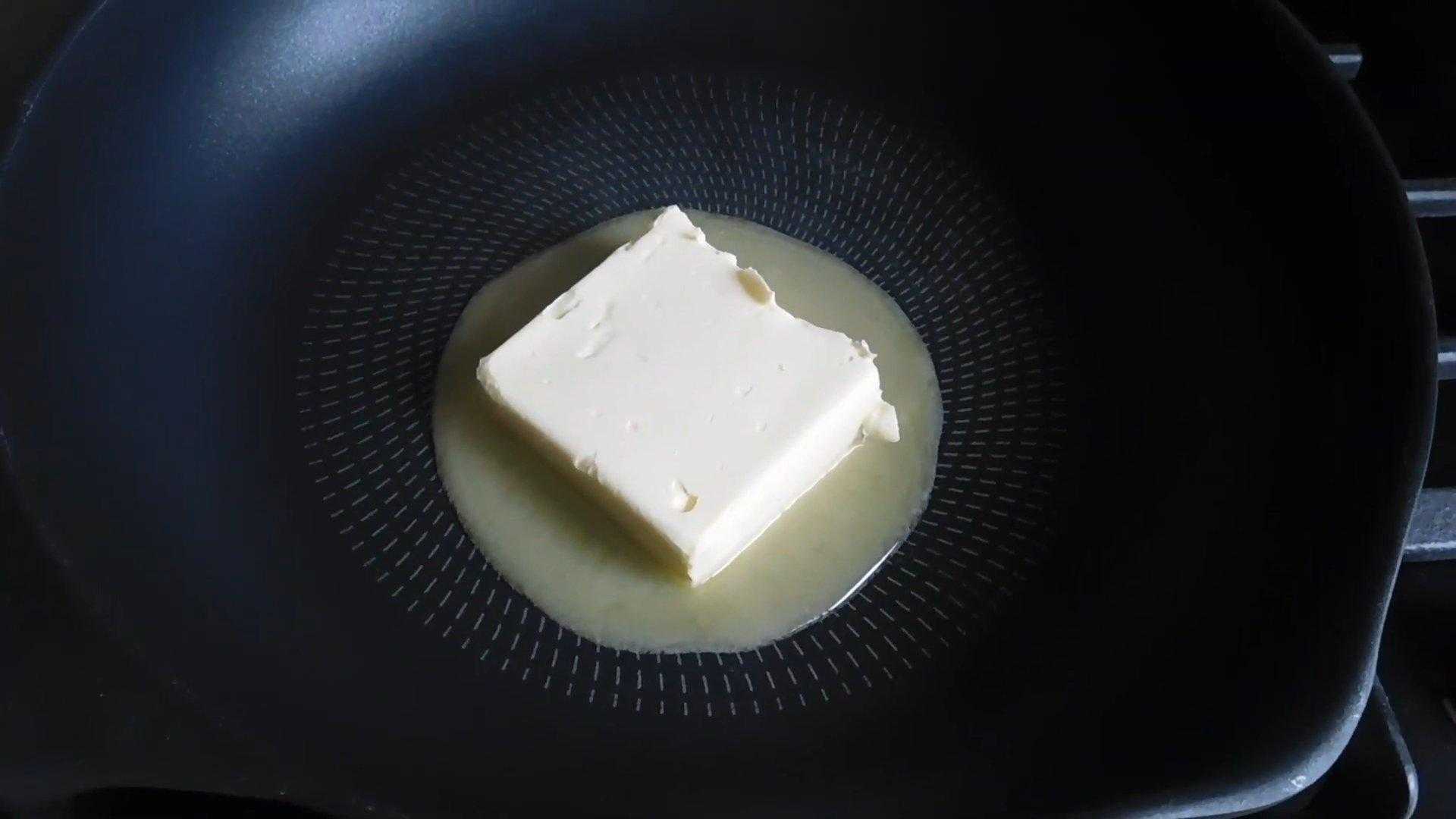 Сливочное масло выкладываем в глубокую сковороду и ставим ее на огонь.