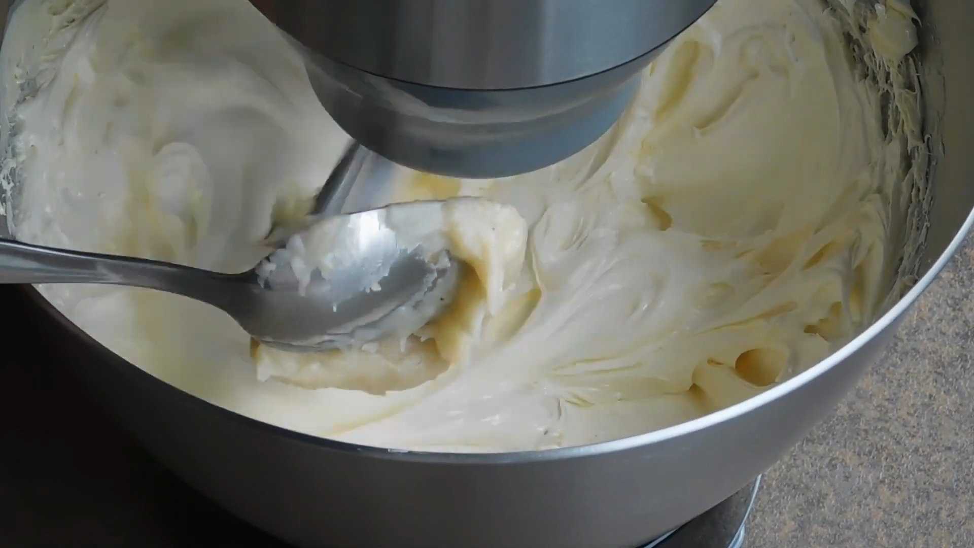 Когда масса стала однородной, выключаем миксер. Накрываем миску пищевой пленкой и отправляем в холодильник, чтобы крем хорошо стабилизировался.