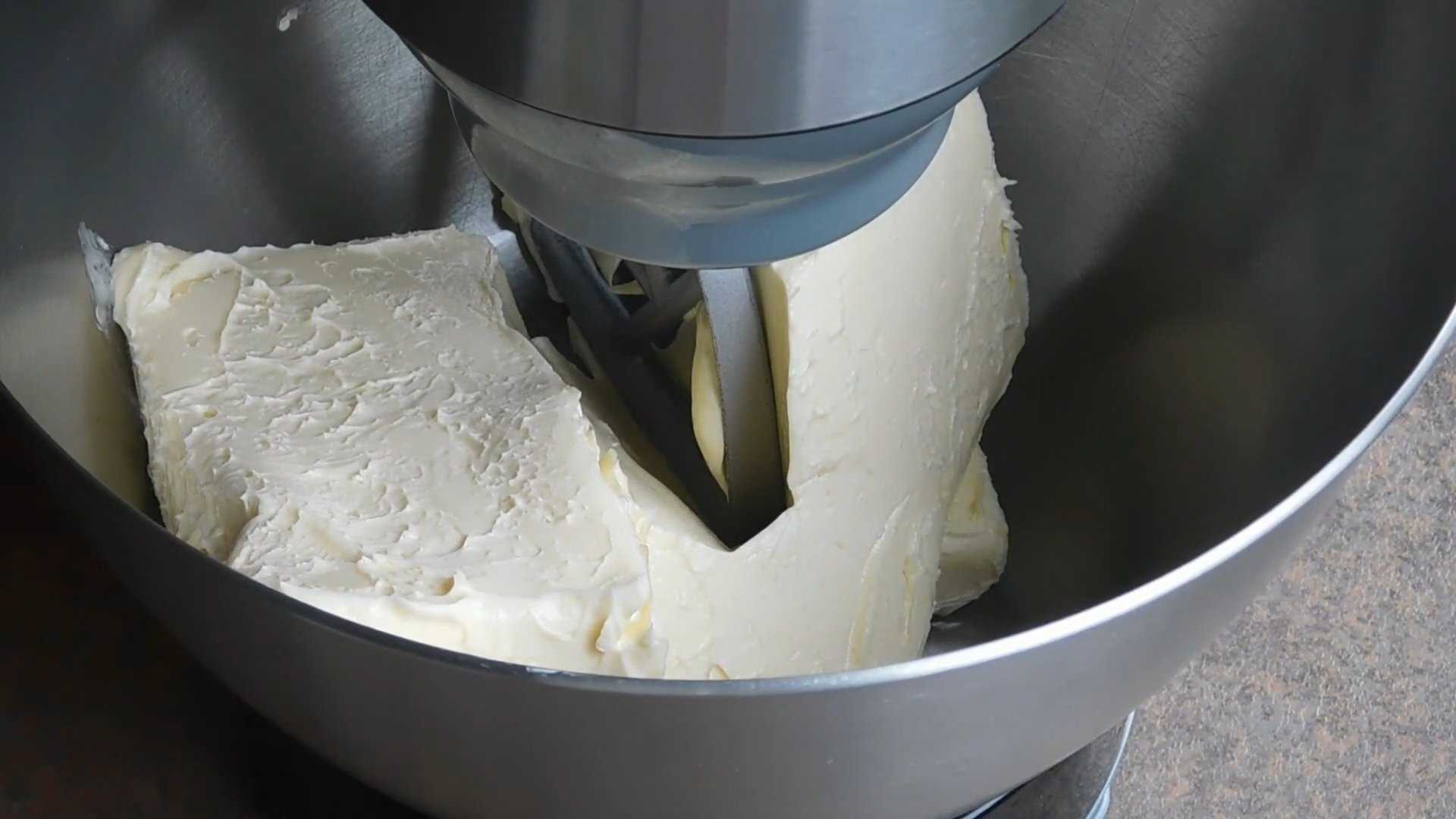 Мягкое сливочное масло выкладываем в чашу миксера и начинаем взбивать до устойчивых пиков.