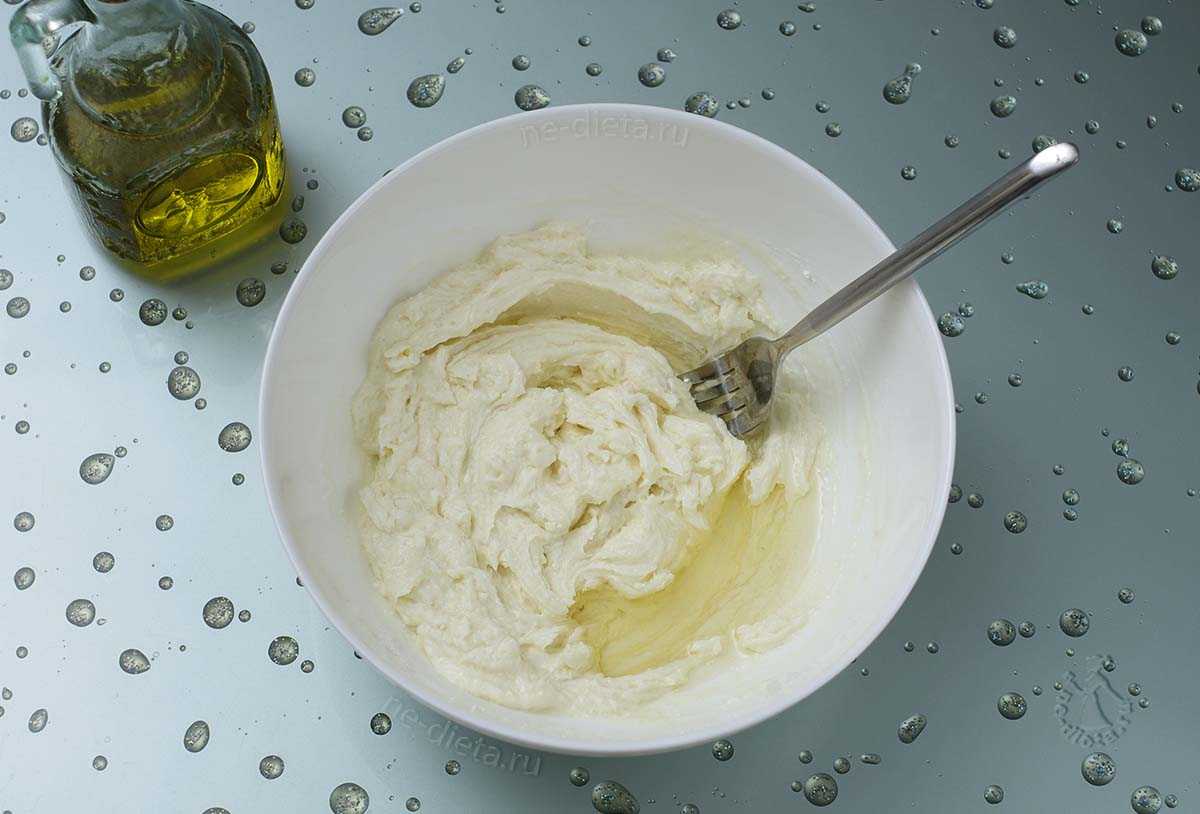 - После этого аккуратно вмешиваем взбитые сливки в сырную массу.