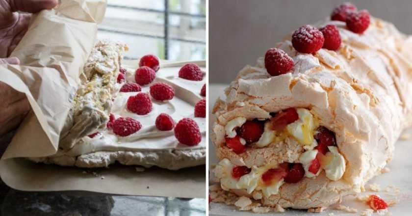 Меренговый рулет с лимонным курдом и взбитыми сливками — красивый и безумно вкусный!