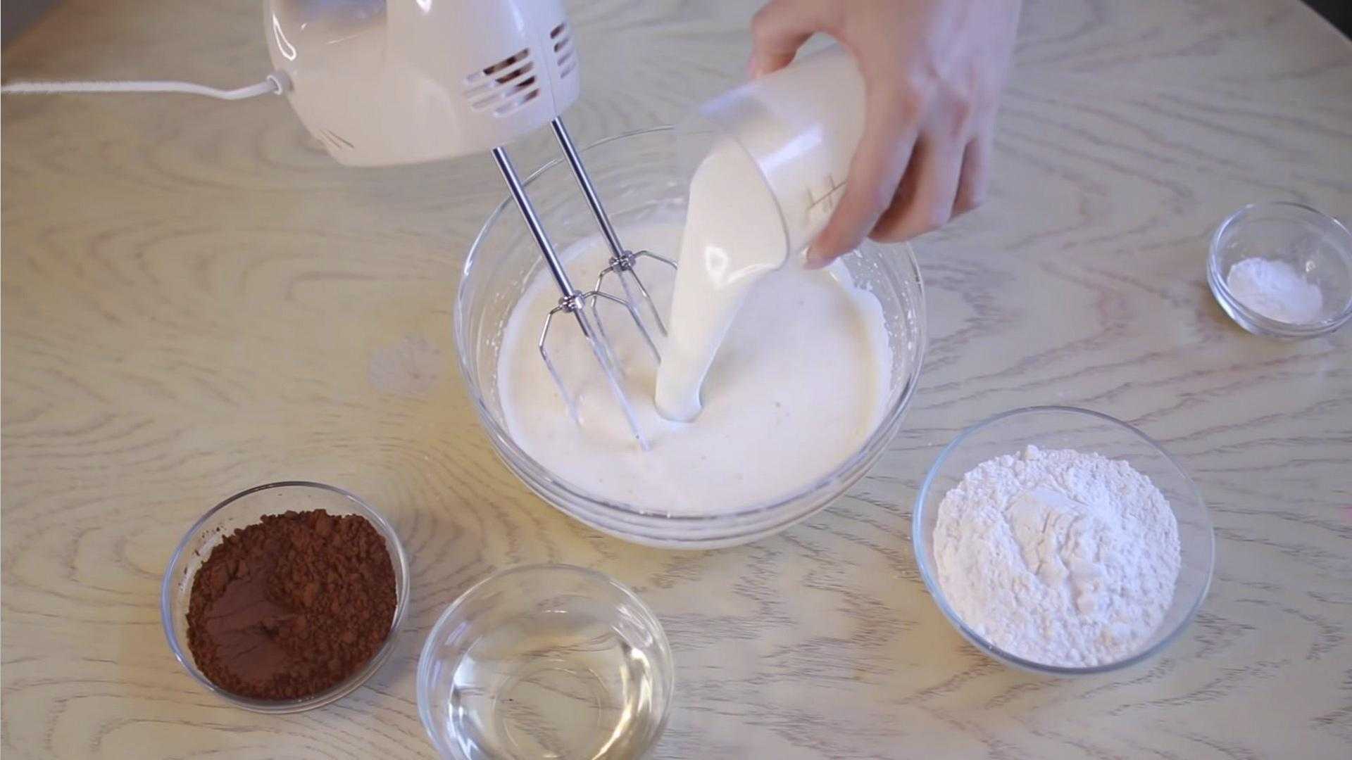 Добавьте яйца (по одному за раз), хорошо перемешивая после каждого добавления. Очищайте лопаткой вниз стороны чаши по мере необходимости.
