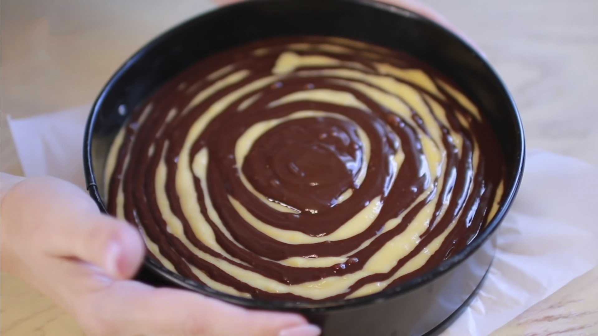 Можно испечь все тесто сразу, а затем разрезать пополам один высокий пирог. Но я советую вам разделить тесто пополам и испечь его в два приема. Так коржи лучше пропекутся.