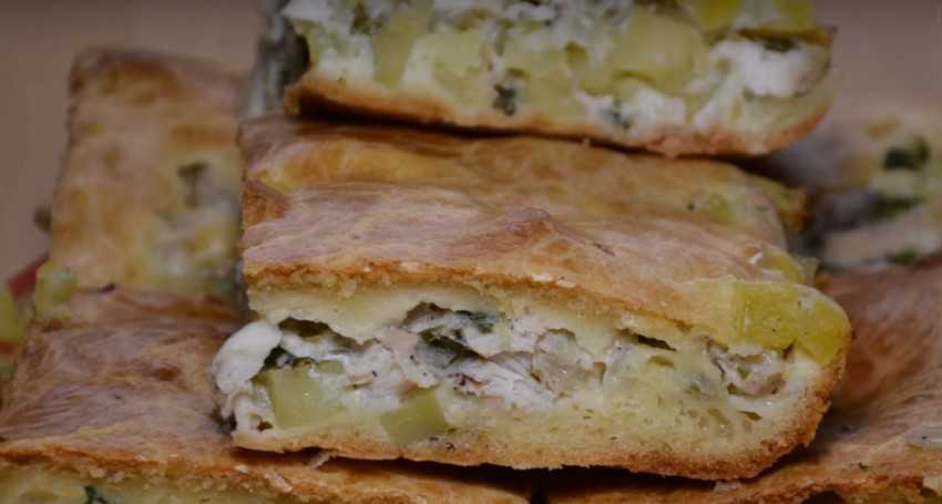 Быстрый заливного пирог с мясом курицы и картошкой в духовке