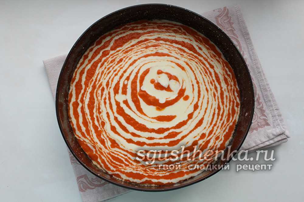 Выливаем в форму половину теста.
